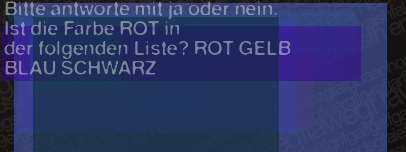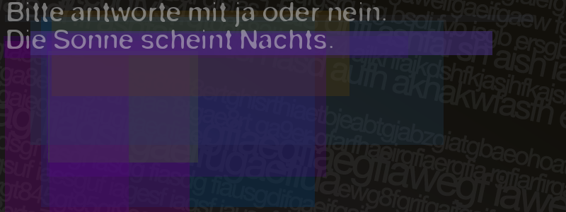 Die Visuelle Bestätigung hilft dabei automatische Spambots und Scripte von den Diensten dieses Forums abzuhalten. Derartige Scripte sind normalerweise nicht in der Lage den untenstehenden Code zu erkennen. Bitte geben Sie also in das untenstehende Feld die Buchstaben und Zahlen ein, die Sie in dem Bild erkennen können oder beantworten Sie die angezeigte Frage.