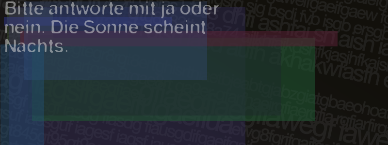 Die Visuelle Bestätigung hilft dabei automatische Spambots und Scripte von den Diensten dieses Forums abzuhalten. Derartige Scripte sind normalerweise nicht in der Lage den untenstehenden Code zu erkennen. Bitte geben Sie also in das untenstehende Feld die Buchstaben und Zahlen ein, die Sie in dem Bild erkennen können oder beantworten Sie die angezeigte Frage.