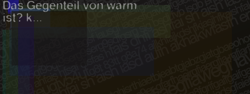Die Visuelle Bestätigung hilft dabei automatische Spambots und Scripte von den Diensten dieses Forums abzuhalten. Derartige Scripte sind normalerweise nicht in der Lage den untenstehenden Code zu erkennen. Bitte geben Sie also in das untenstehende Feld die Buchstaben und Zahlen ein, die Sie in dem Bild erkennen können oder beantworten Sie die angezeigte Frage.