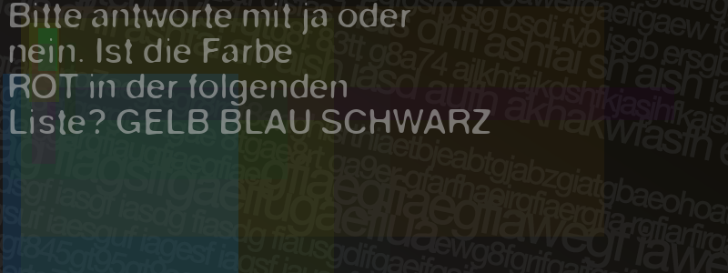 Die Visuelle Bestätigung hilft dabei automatische Spambots und Scripte von den Diensten dieses Forums abzuhalten. Derartige Scripte sind normalerweise nicht in der Lage den untenstehenden Code zu erkennen. Bitte geben Sie also in das untenstehende Feld die Buchstaben und Zahlen ein, die Sie in dem Bild erkennen können oder beantworten Sie die angezeigte Frage.