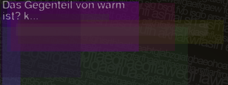 Die Visuelle Bestätigung hilft dabei automatische Spambots und Scripte von den Diensten dieses Forums abzuhalten. Derartige Scripte sind normalerweise nicht in der Lage den untenstehenden Code zu erkennen. Bitte geben Sie also in das untenstehende Feld die Buchstaben und Zahlen ein, die Sie in dem Bild erkennen können oder beantworten Sie die angezeigte Frage.