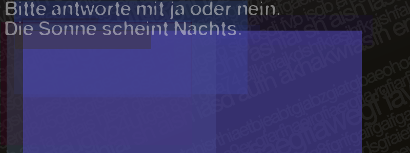 Die Visuelle Bestätigung hilft dabei automatische Spambots und Scripte von den Diensten dieses Forums abzuhalten. Derartige Scripte sind normalerweise nicht in der Lage den untenstehenden Code zu erkennen. Bitte geben Sie also in das untenstehende Feld die Buchstaben und Zahlen ein, die Sie in dem Bild erkennen können oder beantworten Sie die angezeigte Frage.