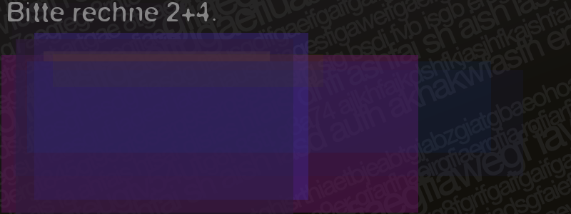 Die Visuelle Bestätigung hilft dabei automatische Spambots und Scripte von den Diensten dieses Forums abzuhalten. Derartige Scripte sind normalerweise nicht in der Lage den untenstehenden Code zu erkennen. Bitte geben Sie also in das untenstehende Feld die Buchstaben und Zahlen ein, die Sie in dem Bild erkennen können oder beantworten Sie die angezeigte Frage.
