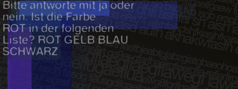 Die Visuelle Bestätigung hilft dabei automatische Spambots und Scripte von den Diensten dieses Forums abzuhalten. Derartige Scripte sind normalerweise nicht in der Lage den untenstehenden Code zu erkennen. Bitte geben Sie also in das untenstehende Feld die Buchstaben und Zahlen ein, die Sie in dem Bild erkennen können oder beantworten Sie die angezeigte Frage.
