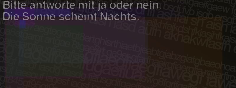 Die Visuelle Bestätigung hilft dabei automatische Spambots und Scripte von den Diensten dieses Forums abzuhalten. Derartige Scripte sind normalerweise nicht in der Lage den untenstehenden Code zu erkennen. Bitte geben Sie also in das untenstehende Feld die Buchstaben und Zahlen ein, die Sie in dem Bild erkennen können oder beantworten Sie die angezeigte Frage.