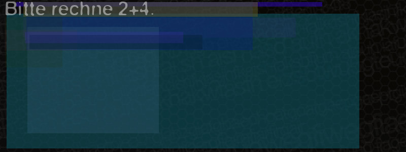 Die Visuelle Bestätigung hilft dabei automatische Spambots und Scripte von den Diensten dieses Forums abzuhalten. Derartige Scripte sind normalerweise nicht in der Lage den untenstehenden Code zu erkennen. Bitte geben Sie also in das untenstehende Feld die Buchstaben und Zahlen ein, die Sie in dem Bild erkennen können oder beantworten Sie die angezeigte Frage.
