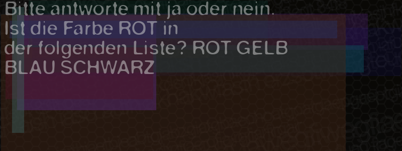 Die Visuelle Bestätigung hilft dabei automatische Spambots und Scripte von den Diensten dieses Forums abzuhalten. Derartige Scripte sind normalerweise nicht in der Lage den untenstehenden Code zu erkennen. Bitte geben Sie also in das untenstehende Feld die Buchstaben und Zahlen ein, die Sie in dem Bild erkennen können oder beantworten Sie die angezeigte Frage.