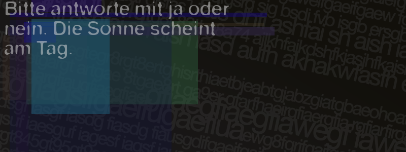 Die Visuelle Bestätigung hilft dabei automatische Spambots und Scripte von den Diensten dieses Forums abzuhalten. Derartige Scripte sind normalerweise nicht in der Lage den untenstehenden Code zu erkennen. Bitte geben Sie also in das untenstehende Feld die Buchstaben und Zahlen ein, die Sie in dem Bild erkennen können oder beantworten Sie die angezeigte Frage.