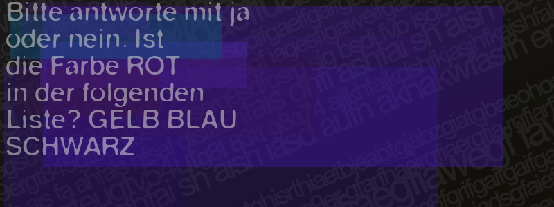 Die Visuelle Bestätigung hilft dabei automatische Spambots und Scripte von den Diensten dieses Forums abzuhalten. Derartige Scripte sind normalerweise nicht in der Lage den untenstehenden Code zu erkennen. Bitte geben Sie also in das untenstehende Feld die Buchstaben und Zahlen ein, die Sie in dem Bild erkennen können oder beantworten Sie die angezeigte Frage.