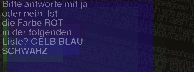 Die Visuelle Bestätigung hilft dabei automatische Spambots und Scripte von den Diensten dieses Forums abzuhalten. Derartige Scripte sind normalerweise nicht in der Lage den untenstehenden Code zu erkennen. Bitte geben Sie also in das untenstehende Feld die Buchstaben und Zahlen ein, die Sie in dem Bild erkennen können oder beantworten Sie die angezeigte Frage.