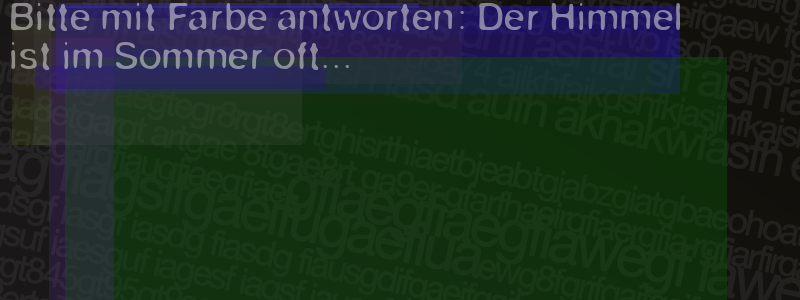 Die Visuelle Bestätigung hilft dabei automatische Spambots und Scripte von den Diensten dieses Forums abzuhalten. Derartige Scripte sind normalerweise nicht in der Lage den untenstehenden Code zu erkennen. Bitte geben Sie also in das untenstehende Feld die Buchstaben und Zahlen ein, die Sie in dem Bild erkennen können oder beantworten Sie die angezeigte Frage.
