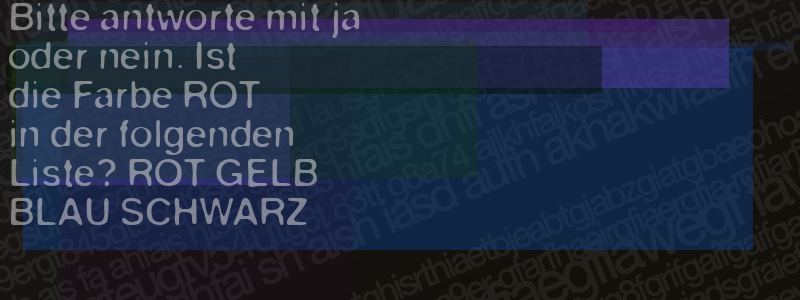 Die Visuelle Bestätigung hilft dabei automatische Spambots und Scripte von den Diensten dieses Forums abzuhalten. Derartige Scripte sind normalerweise nicht in der Lage den untenstehenden Code zu erkennen. Bitte geben Sie also in das untenstehende Feld die Buchstaben und Zahlen ein, die Sie in dem Bild erkennen können oder beantworten Sie die angezeigte Frage.