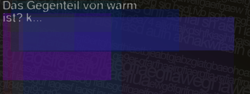 Die Visuelle Bestätigung hilft dabei automatische Spambots und Scripte von den Diensten dieses Forums abzuhalten. Derartige Scripte sind normalerweise nicht in der Lage den untenstehenden Code zu erkennen. Bitte geben Sie also in das untenstehende Feld die Buchstaben und Zahlen ein, die Sie in dem Bild erkennen können oder beantworten Sie die angezeigte Frage.