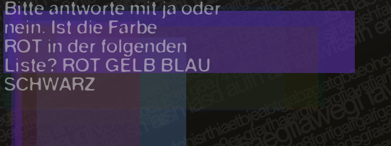 Die Visuelle Bestätigung hilft dabei automatische Spambots und Scripte von den Diensten dieses Forums abzuhalten. Derartige Scripte sind normalerweise nicht in der Lage den untenstehenden Code zu erkennen. Bitte geben Sie also in das untenstehende Feld die Buchstaben und Zahlen ein, die Sie in dem Bild erkennen können oder beantworten Sie die angezeigte Frage.