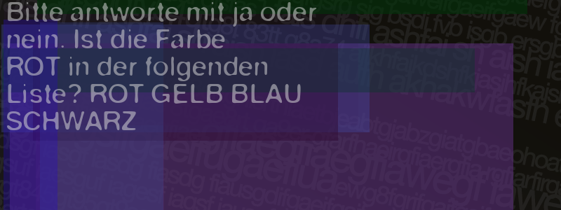 Die Visuelle Bestätigung hilft dabei automatische Spambots und Scripte von den Diensten dieses Forums abzuhalten. Derartige Scripte sind normalerweise nicht in der Lage den untenstehenden Code zu erkennen. Bitte geben Sie also in das untenstehende Feld die Buchstaben und Zahlen ein, die Sie in dem Bild erkennen können oder beantworten Sie die angezeigte Frage.