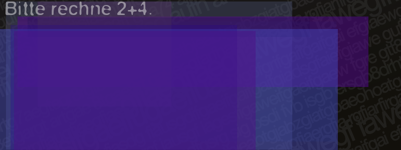 Die Visuelle Bestätigung hilft dabei automatische Spambots und Scripte von den Diensten dieses Forums abzuhalten. Derartige Scripte sind normalerweise nicht in der Lage den untenstehenden Code zu erkennen. Bitte geben Sie also in das untenstehende Feld die Buchstaben und Zahlen ein, die Sie in dem Bild erkennen können oder beantworten Sie die angezeigte Frage.