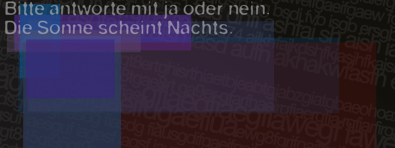 Die Visuelle Bestätigung hilft dabei automatische Spambots und Scripte von den Diensten dieses Forums abzuhalten. Derartige Scripte sind normalerweise nicht in der Lage den untenstehenden Code zu erkennen. Bitte geben Sie also in das untenstehende Feld die Buchstaben und Zahlen ein, die Sie in dem Bild erkennen können oder beantworten Sie die angezeigte Frage.
