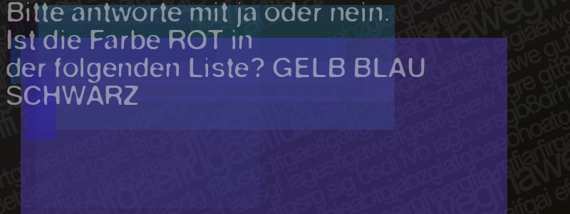 Die Visuelle Bestätigung hilft dabei automatische Spambots und Scripte von den Diensten dieses Forums abzuhalten. Derartige Scripte sind normalerweise nicht in der Lage den untenstehenden Code zu erkennen. Bitte geben Sie also in das untenstehende Feld die Buchstaben und Zahlen ein, die Sie in dem Bild erkennen können oder beantworten Sie die angezeigte Frage.