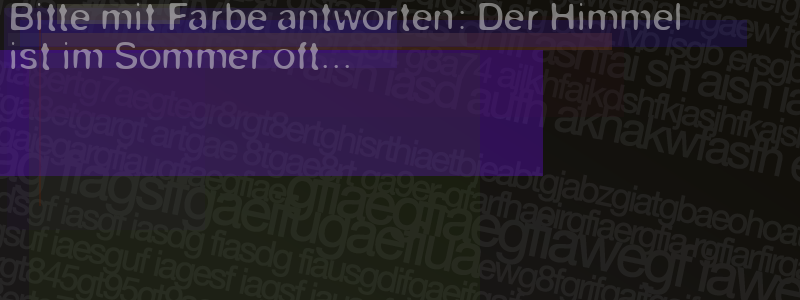 Die Visuelle Bestätigung hilft dabei automatische Spambots und Scripte von den Diensten dieses Forums abzuhalten. Derartige Scripte sind normalerweise nicht in der Lage den untenstehenden Code zu erkennen. Bitte geben Sie also in das untenstehende Feld die Buchstaben und Zahlen ein, die Sie in dem Bild erkennen können oder beantworten Sie die angezeigte Frage.