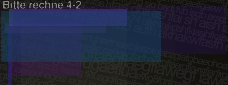 Die Visuelle Bestätigung hilft dabei automatische Spambots und Scripte von den Diensten dieses Forums abzuhalten. Derartige Scripte sind normalerweise nicht in der Lage den untenstehenden Code zu erkennen. Bitte geben Sie also in das untenstehende Feld die Buchstaben und Zahlen ein, die Sie in dem Bild erkennen können oder beantworten Sie die angezeigte Frage.