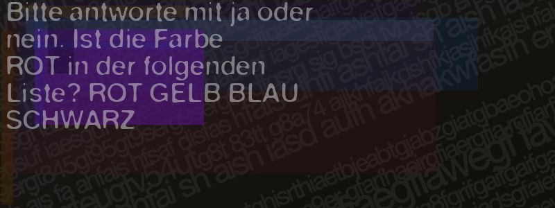 Die Visuelle Bestätigung hilft dabei automatische Spambots und Scripte von den Diensten dieses Forums abzuhalten. Derartige Scripte sind normalerweise nicht in der Lage den untenstehenden Code zu erkennen. Bitte geben Sie also in das untenstehende Feld die Buchstaben und Zahlen ein, die Sie in dem Bild erkennen können oder beantworten Sie die angezeigte Frage.