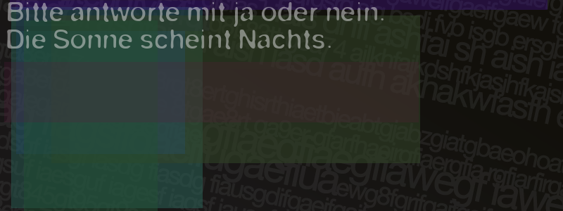 Die Visuelle Bestätigung hilft dabei automatische Spambots und Scripte von den Diensten dieses Forums abzuhalten. Derartige Scripte sind normalerweise nicht in der Lage den untenstehenden Code zu erkennen. Bitte geben Sie also in das untenstehende Feld die Buchstaben und Zahlen ein, die Sie in dem Bild erkennen können oder beantworten Sie die angezeigte Frage.