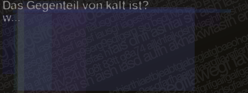 Die Visuelle Bestätigung hilft dabei automatische Spambots und Scripte von den Diensten dieses Forums abzuhalten. Derartige Scripte sind normalerweise nicht in der Lage den untenstehenden Code zu erkennen. Bitte geben Sie also in das untenstehende Feld die Buchstaben und Zahlen ein, die Sie in dem Bild erkennen können oder beantworten Sie die angezeigte Frage.