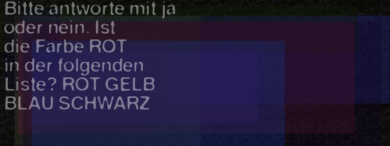 Die Visuelle Bestätigung hilft dabei automatische Spambots und Scripte von den Diensten dieses Forums abzuhalten. Derartige Scripte sind normalerweise nicht in der Lage den untenstehenden Code zu erkennen. Bitte geben Sie also in das untenstehende Feld die Buchstaben und Zahlen ein, die Sie in dem Bild erkennen können oder beantworten Sie die angezeigte Frage.