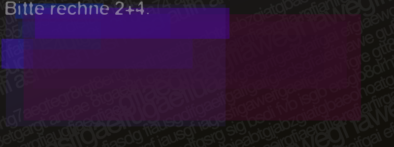 Die Visuelle Bestätigung hilft dabei automatische Spambots und Scripte von den Diensten dieses Forums abzuhalten. Derartige Scripte sind normalerweise nicht in der Lage den untenstehenden Code zu erkennen. Bitte geben Sie also in das untenstehende Feld die Buchstaben und Zahlen ein, die Sie in dem Bild erkennen können oder beantworten Sie die angezeigte Frage.