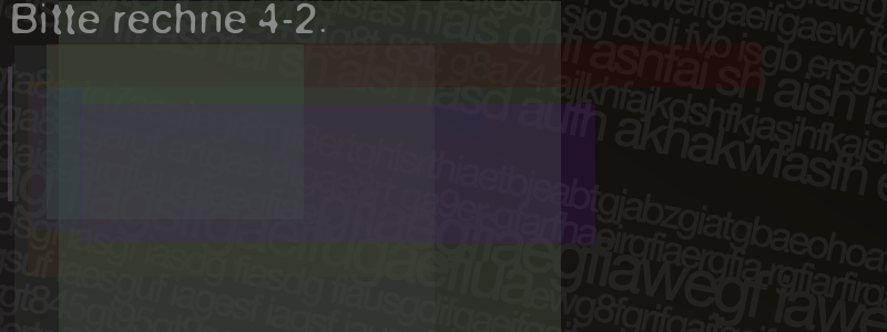 Die Visuelle Bestätigung hilft dabei automatische Spambots und Scripte von den Diensten dieses Forums abzuhalten. Derartige Scripte sind normalerweise nicht in der Lage den untenstehenden Code zu erkennen. Bitte geben Sie also in das untenstehende Feld die Buchstaben und Zahlen ein, die Sie in dem Bild erkennen können oder beantworten Sie die angezeigte Frage.