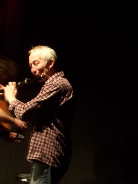 Leider sind mir die Fotos, die ihn dabei zeigen etwas mißraten, sie sind ob der relativ langen Belichtungszeit unscharf. Seine Soli sind Eigenkompositionen, zu denen er auch die Geschichten erzählte. Eine möchte ich in kurzen Worten wiedergeben: Ein kürzlich verstorbener Freund wurde ständig von seinen Enkelkindern um Lollis angebettelt. als es ihm zu viel wurde, nahm er die abgelutschten Stiele und pflanzte sie in den Garten, damit für die nächste Woche wieder ausreichend Lolipops da wären - The Lolipoptree. Dargeboten auf der Lowwhistle - eine sehr große Ausgabe der Tinwhistle, das mittlere Stück begleitet von Esbjörn Hazelius auf der Cister (So'ne Art 10 Saitige Mandoline).