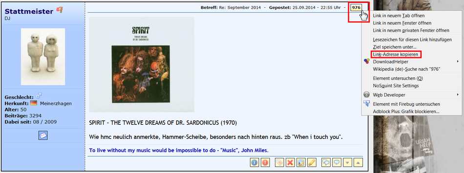 Mit <Mausklick-Rechts> auf die Nr. des entsprechenden Postings kannst Du die Adresse direkt in die Zwischenablage kopieren und dann in Deinem Beitrag einfügen. Ein Klick auf Deinen erzeugten Link führt direkt zu dem gewünschten Posting.