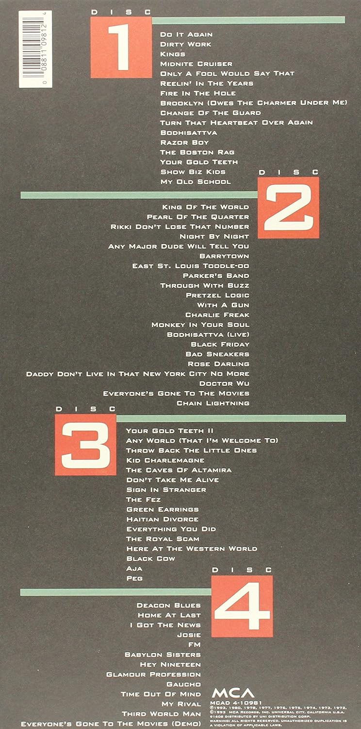 Ich habe noch alle alten Einzel-LPs und mir dann später diese Box zugelegt. Da sind sie auch alle dabei. (Collecting all of Steely Dan's albums in chronological order, plus all of their two or three B-sides and one demo in a four-CD box, Citizen Steely Dan is only worthwhile for the fan replacing their old records. The remastering on the box is exactly the same as the newly upgraded CDs, and everything but the demo is available on other discs.)